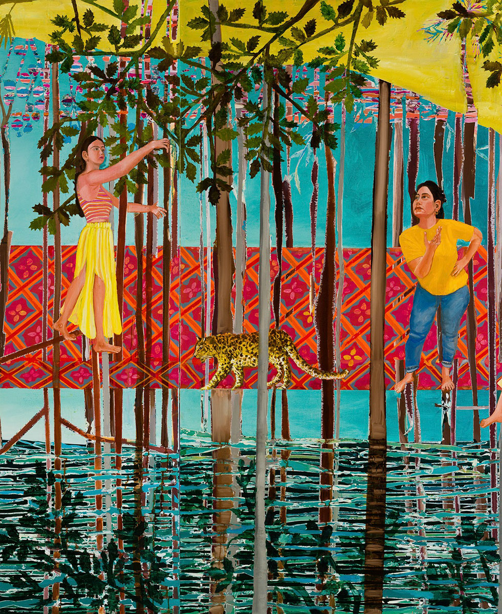 בעבודותיה הקודמות נעה אמיתי סדובסקי במקביל בין ציורים גדולי-ממדים, ששילבו מרקמים ססגוניים, לבין מיצבי הנפשה ציוריים, שרובם עסקו בסביבה הביתית והמשפחתית. השפה הציורית הקולאז'יסטית, שאפיינה את עבודותיה בעבר וממשיכה להתקיים גם כאן, מציעה ריבוי שכבות, אמביוולנטיוּת ויחסיוּת כנקודת מוצא להתבוננות. עולם הטקסטיל ודגמי הבד העיטוריים שימשו אותה לא אחת כמשאב עשיר, הממחיש כיצד יכולים דימויי אדם, צומח וחי לצוף על פני השטח ולהתחבר זה לזה בהיגיון פנימי נטול היררכיה.