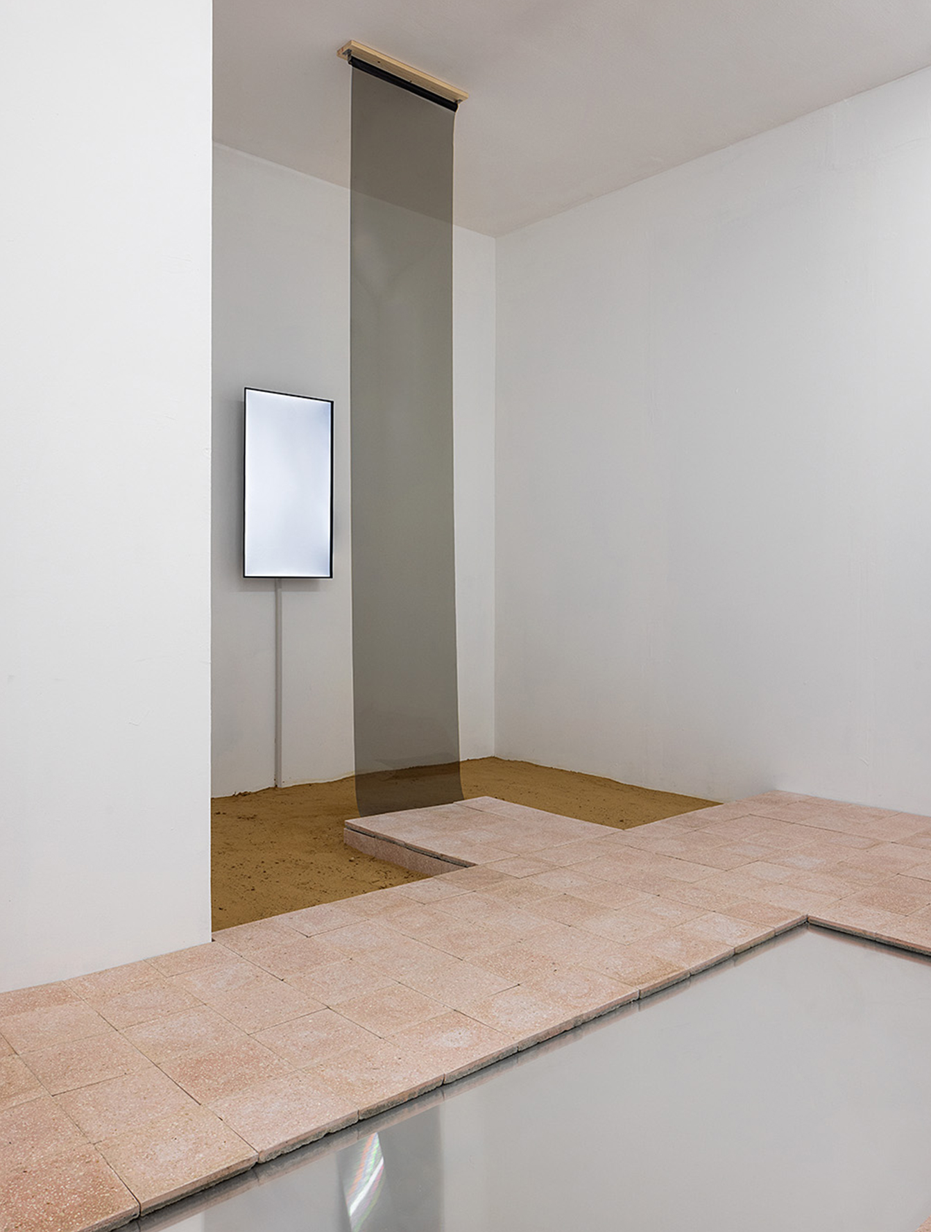 עם הרמת המבט מן הרצפה נגלה תעתוע נוסף: מסך טלוויזיה ויריעת פילטר פלסטי המוצבת לפניו, המאפשרת לדימוי שעל המסך להפציע ולהיעלם בהתאם לזווית הראיה. כאשר ניצבים ישירות מול הפילטר נגלה על מסך הטלוויזיה אחד מן הדגמים לאנדרטה של מרדכי אנילביץ - דגם שפוסל מחימר של דמות נערית, רזה וגרמית, חשופת חזה וארוכת צוואר, שאינה משדרת חוסן או חוזק (המתווים הראשונים לדמות התייחסו לטקסט המקראי של סיפור דוד וגוליית, ותיארו נער רך בשנים האוחז קלע בידו). הדגם לא מומש, הדמות הדקה ומכמירת הלב נותרה כאפשרות הגנוזה במעמקי הארכיון, וכעת היא מרצדת כאפשרות מתפוגגת על מסך טלוויזיה, מבליחה או נעלמת לסירוגין מאחורי פילטר הפלסטיק; מעין אנדרטת רפאים שמימושה כיום נדמה טראגי אך רלוונטי מתמיד. אומנם קיבוץ יד מרדכי, שחווה טראומה קשה ב- 48', ניצל הפעם בנס, אך נדמה כי האסון שהתחולל בקיבוצים הסמוכים מהדהד כיום ביתר שאת דווקא בדגם פיסולי זה.