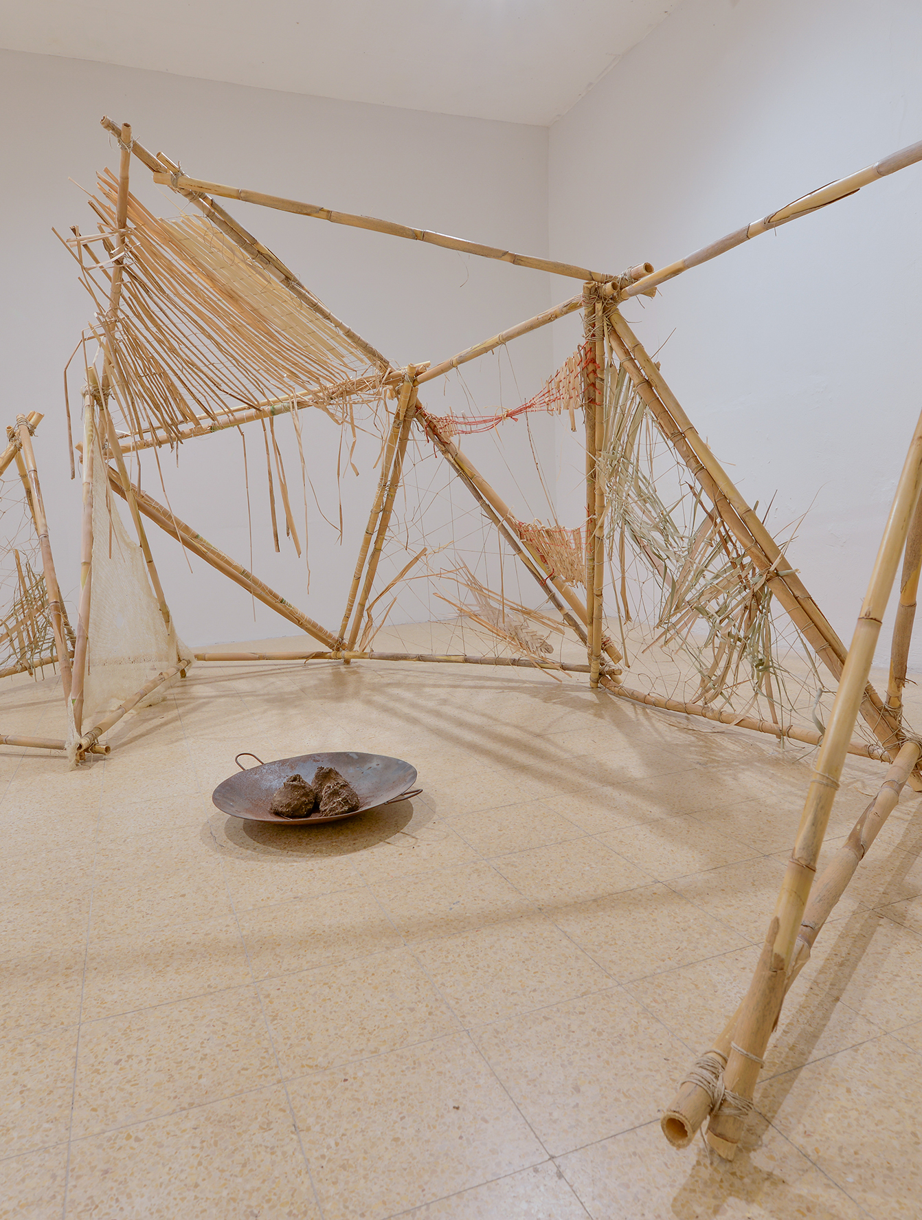 השלדים ששתיהן הניחו כאן בחלל וקראו להם "בית" - האחד עשוי ענפים שאכלה התולעת, והשני מבמבוקים חתוכים באופן שווה - חושפים מערכת מסוימת. זוהי מערכת המחפשת נקודת כאוס פנימית בכדי להגביר נוכחות. זוהי נקודה בתוכנו, שאין לה אפשרות להישמע, אך היא הניעה את יצירת המבנה, ומרגע שנחשף - היא גם תגרום לו להתרסק. לכן נוכחות היוצרות בו, תלויה במצוות הציר המרכזי לדקק את הקירות לכדי שקיפות ולהישמע להוראה חדשה.