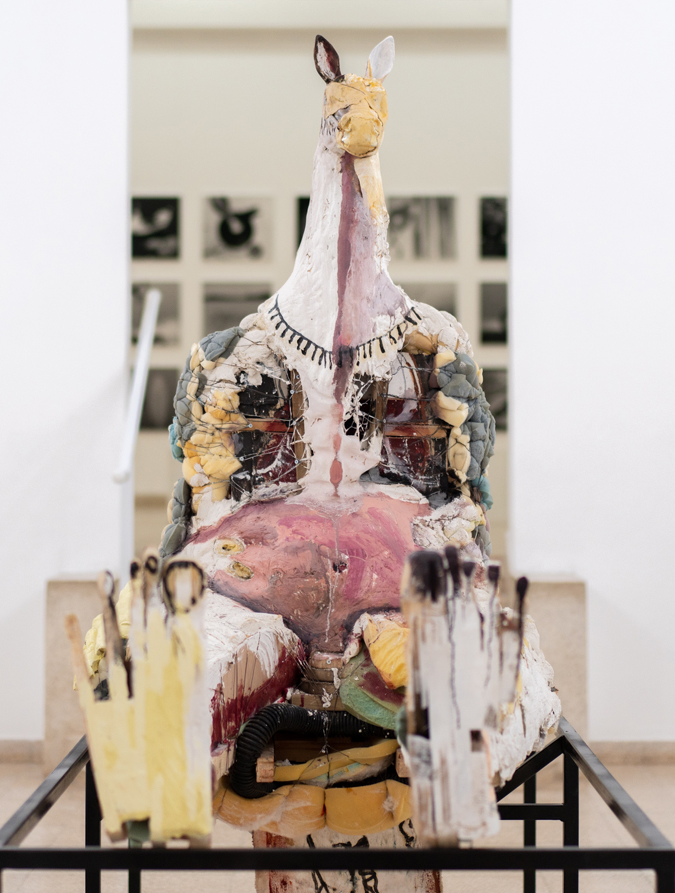 עידן העבד של אמיר נוה – מיצב הנע בין רישום, ציור ופיסול – היא סביבה פרוצה ואינטימית כאחת. הכרכרה המבותרת לשניים על ידי ציור ודמויות הענק הניצבות לצידה מצויות במסע ללא יעד, ללא מטרה, ללא תכלית וללא מנהיג. ניכר שהאמן מונע מתחושה של דחיפות, הבאה לידי ביטוי באקספרסיביות ובחושניות של העבודה, המותירים את הצופה שבוי בחוסר התכלית של הווה מתמשך. משמעויות נוספות נספחות לתהלוכה בשל מיקומה באולם העמודים, חלל מעבר שגם מהדהד תחושה של קדושה (בית כנסת, מקדש, כנסייה).